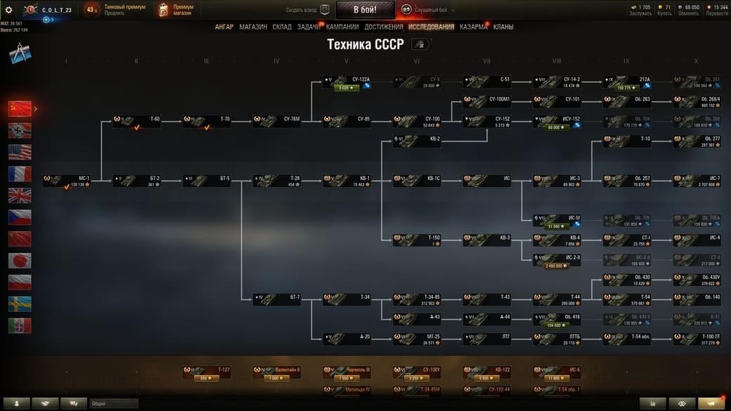 ❌Топы: Т-62А, Объект 268, ИС-7, Объект 140, ИС-4, Объект 261, VK 72.01 (K), Maus, E-100, Leopard 1, G.W. E 100, Grille 15, JagdPz E-100, E-50 Ausf. M, T110E5, T110E4, AMX 50 Foch (155), Bat.-Chatillon 25 t, AMX 50 B, FV215b (183)