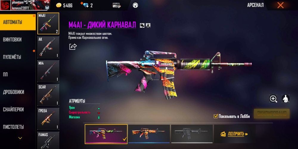 🌈Скины на оружие: AK, Famas, M1873, M500, P90;