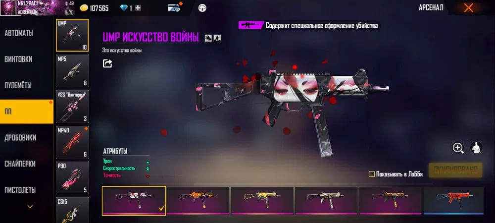 🌈Скины на оружие: 69;