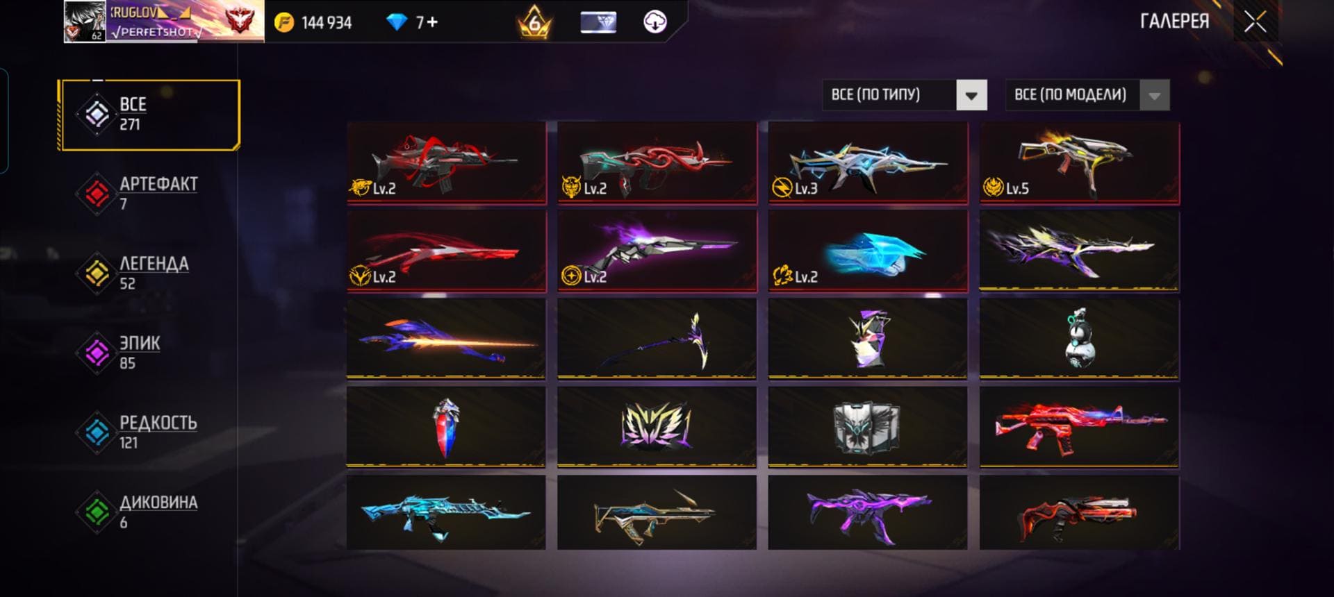 🌈Скины на оружие: 34;