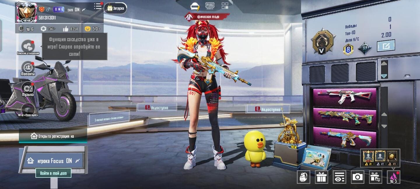 👚Топ костюмы: 102;⭐️Royale Pass: с 2 сезонна;🌈Скины на оружие: 45;