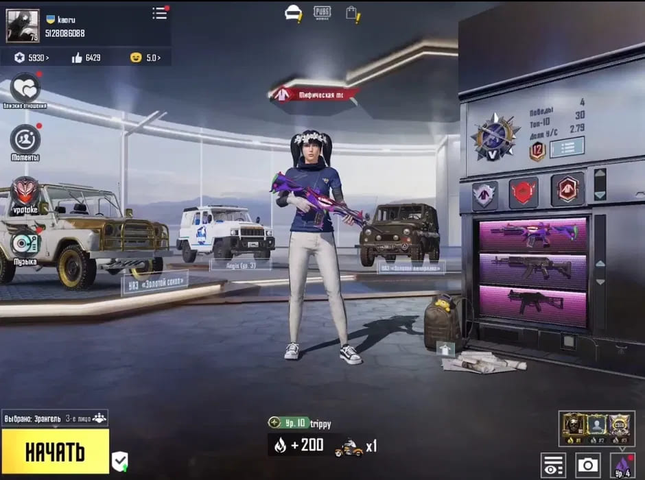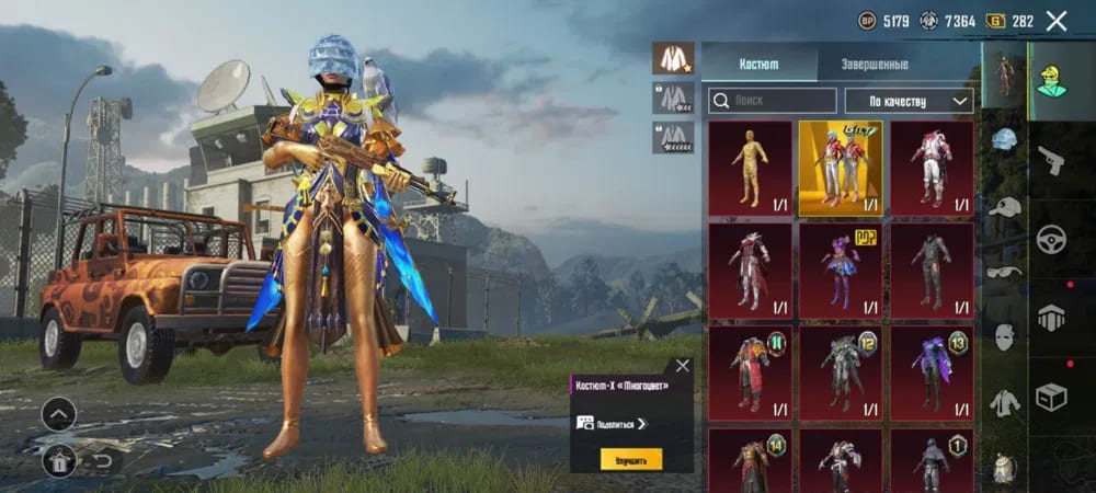 👚Топ костюмы: 200+;⭐️Royale Pass: с 1 сезонна;🌈Скины на оружие: 400;