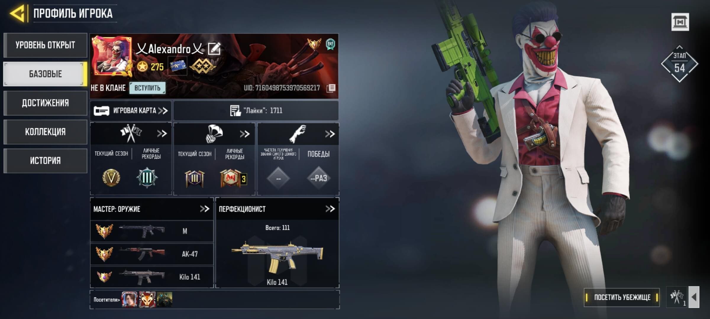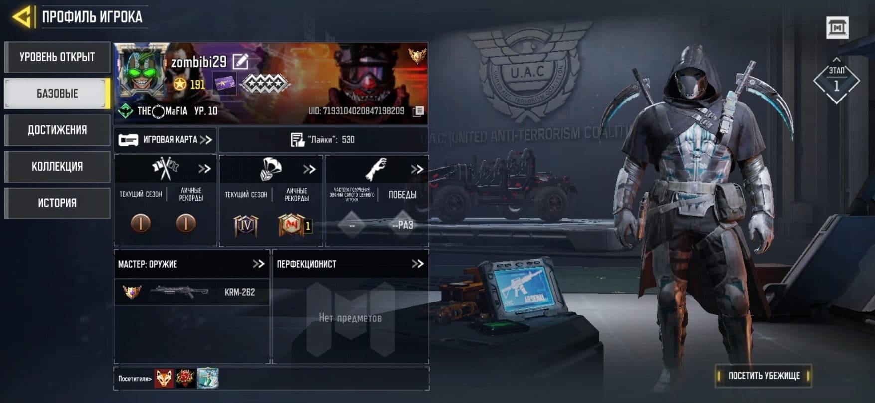 🏅 Ранг: Легендарный⭐️ Уровень: 275💰 CP: 895🕹 Игры: 4186✅ Все привязки отсутствуют
