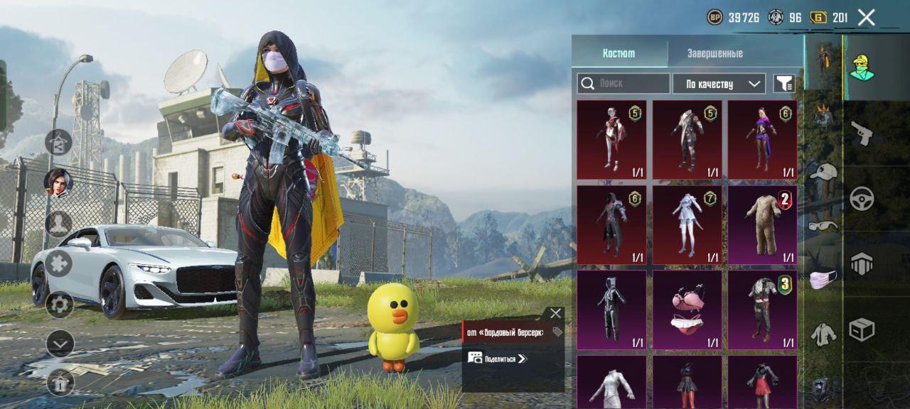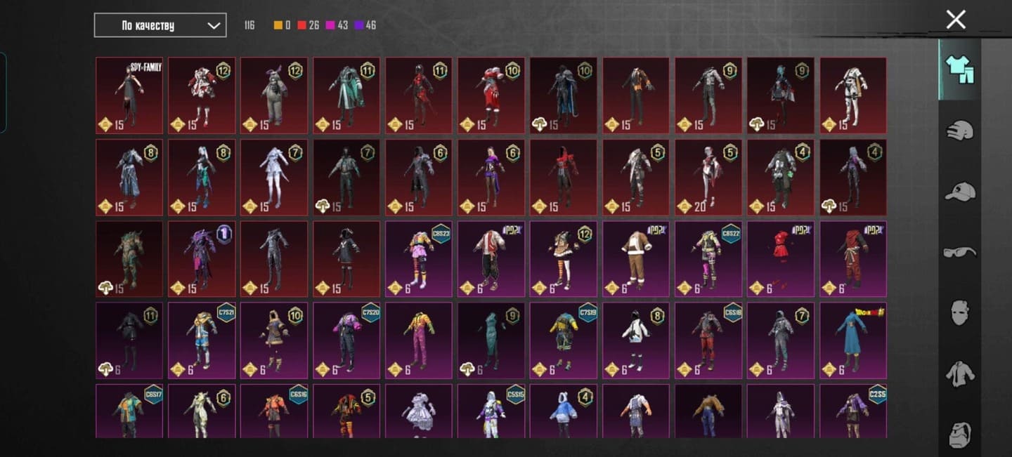 👚Топ костюмы: 26;⭐️Royale Pass: с 7 сезонна;🌈Скины на оружие: 16;