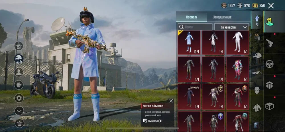 👚Топ костюмы: 197;⭐️Royale Pass: с 1 сезонна;🌈Скины на оружие: 321;