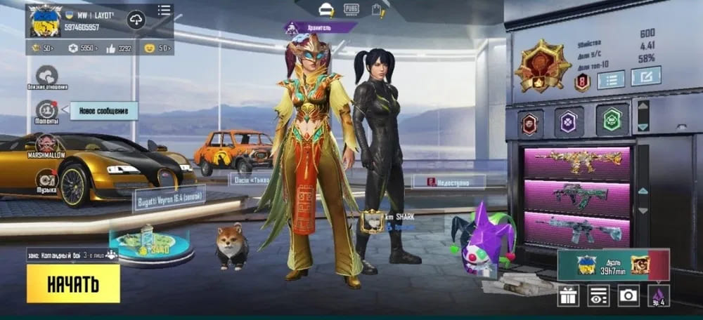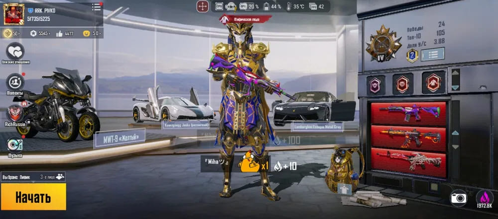 👚Топ костюмы: 45;⭐️Royale Pass: с 5 сезонна;🌈Скины на оружие: 38;