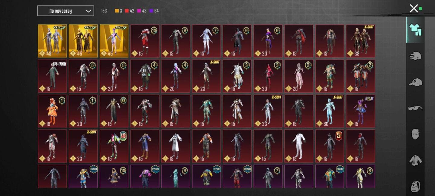 👚Топ костюмы: 142;⭐️Royale Pass: с 4 сезонна;🌈Скины на оружие: 149;