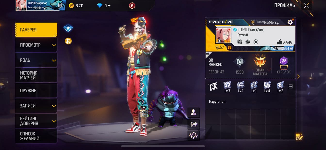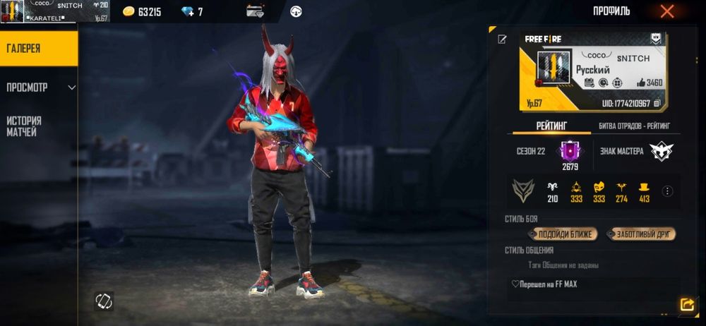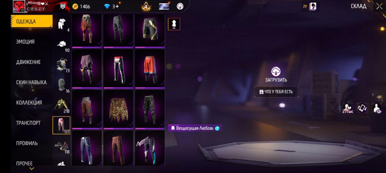 🏅 Ранг: Легендарный⭐️ Уровень: 285💰 CP: 356🕹 Игры: 521✅ Все привязки отсутствуют