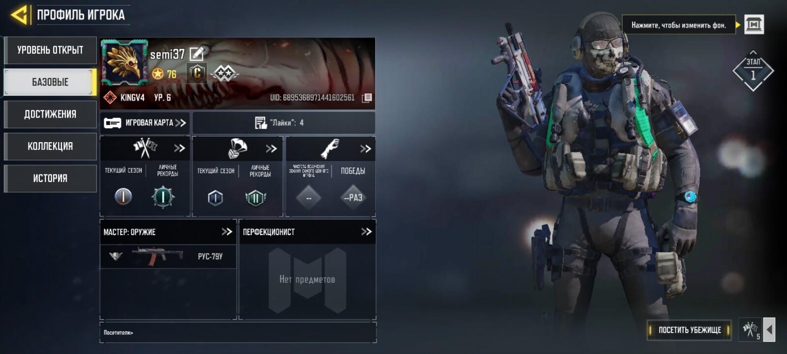 🏅 Ранг: Ветеран⭐️ Уровень: 76💰 CP: 346🕹 Игры: 1985✅ Все привязки отсутствуют