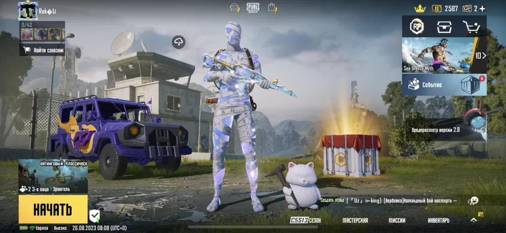 👚Топ костюмы: 25;⭐️Royale Pass: с 3 сезонна;🌈Скины на оружие: 90;