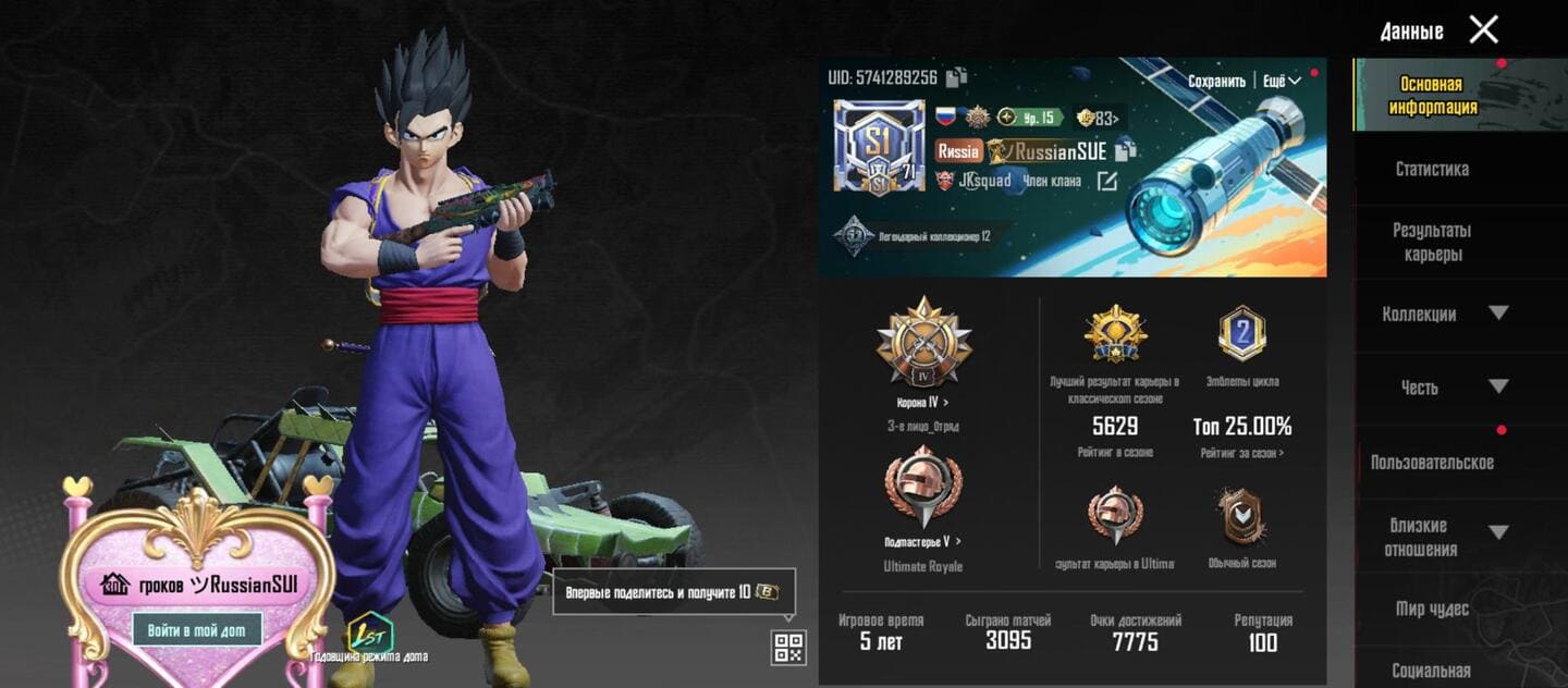 👚Топ костюмы: 83;⭐️Royale Pass: с 4 сезонна;🌈Скины на оружие: 17;