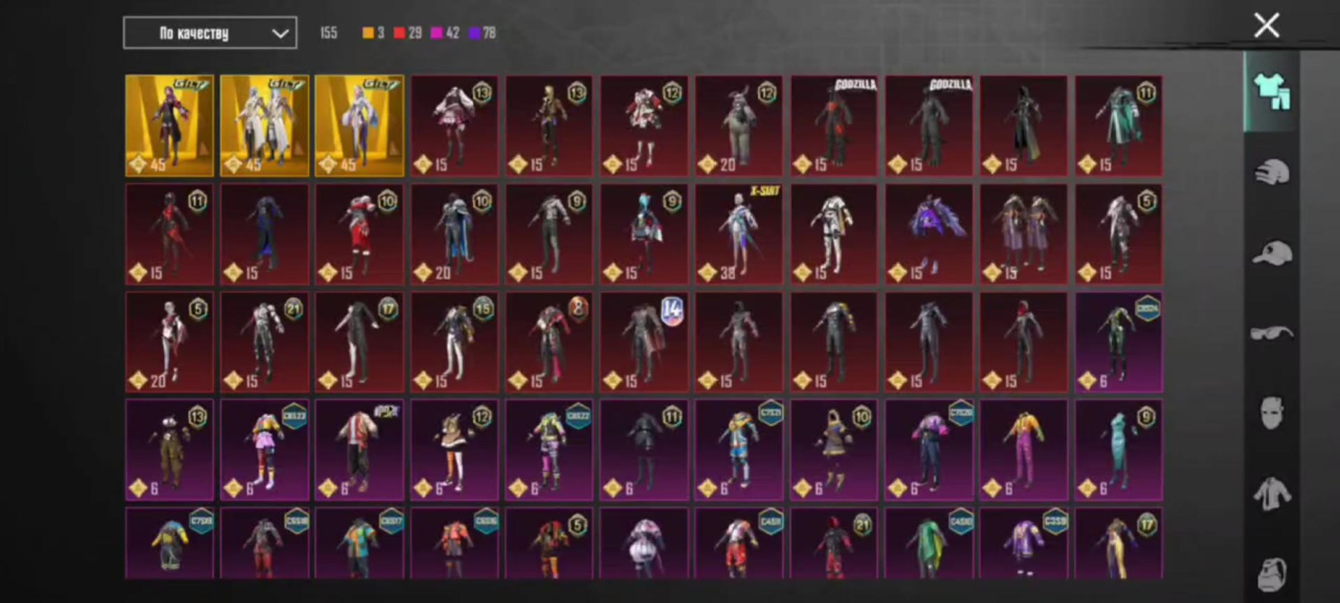 👚Топ костюмы: 48;⭐️Royale Pass: с 3 сезонна;🌈Скины на оружие: 41;