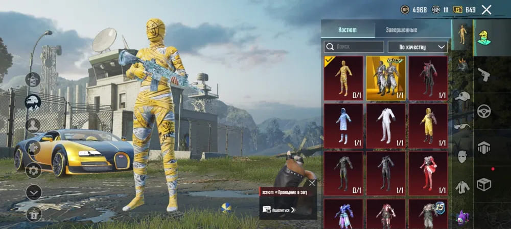 👚Топ костюмы: 32;⭐️Royale Pass: с 6 сезонна;🌈Скины на оружие: 16;